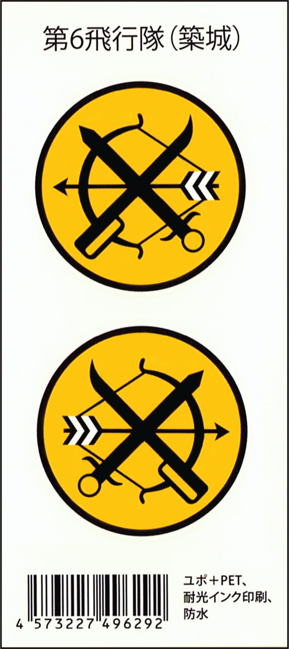 航空自衛隊 築城基地所属の「第6飛行隊」の部隊マーク(弓と剣)デザインのステッカー